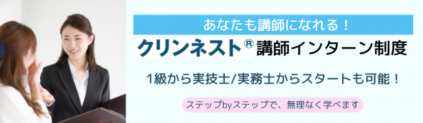 ・インターン制度申込からクリンネスト2級認定講師試験まで【1年以内】を目安とします。