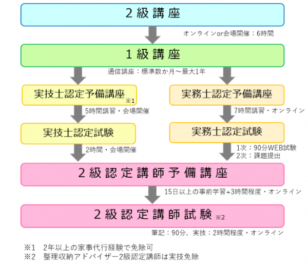 クリンネスト2級~2級認定講師試験までを1つずつ受けた場合